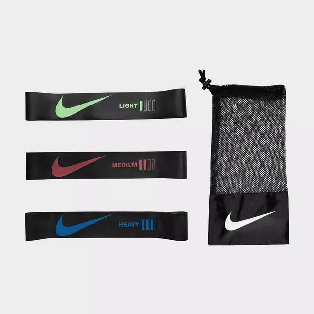 3 Pack contains light, medium and heavy resistance bands. Versatile training tools that are perfect for traveling. Carry bag included. 100% latex. The Nike Mini Resistance Bands (3-Pack) are imported. Take your workout routine with you wherever you go with the Nike Mini Resistance Bands (3-Pack).