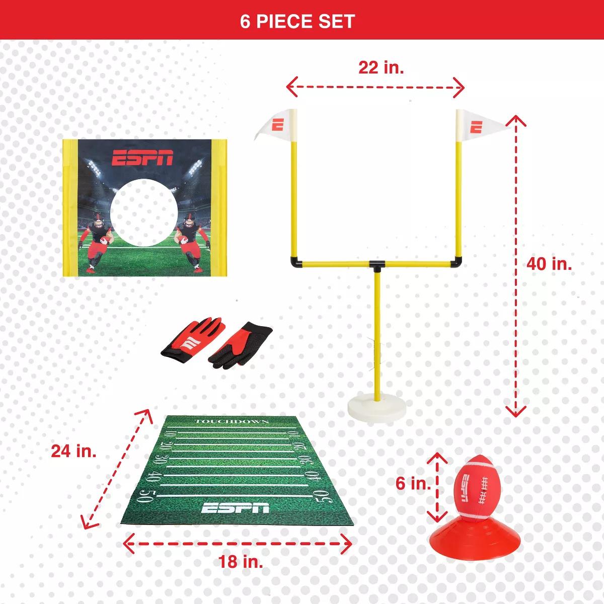 ESPN Kids Football Game Includes Mini Football, Field Goal Post, Passing Target, and Receiver Gloves