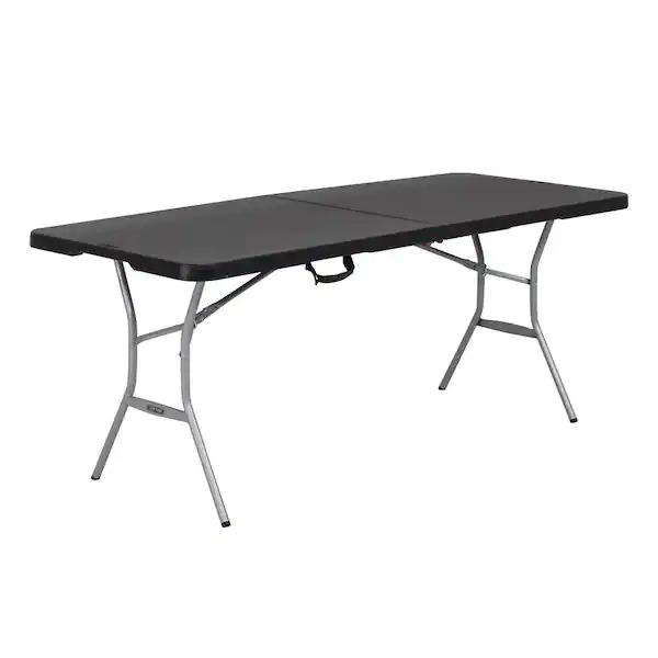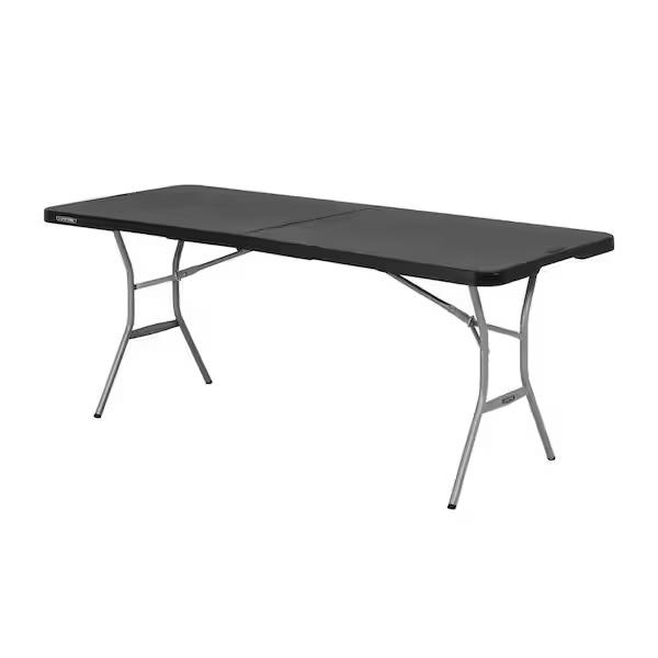 Lifetime 6 ft. Residential Fold-In-Half Folding Tables are constructed of high-density polyethylene and have a convenient folding design for easy transport and storage. The lightweight design, auto-locking feature and convenient carry handle make it easy for anyone to set up and take down. Our tables are UV-protected, will not crack, chip or peel and are built for indoor and outdoor use. The patented steel frame design provides a sturdy foundation and is protected with a powder-coated, weather-resistant finish. Ideal for family game night, outdoor activities and more, Lifetime's Fold-In-Half Tables are the perfect addition to your home.