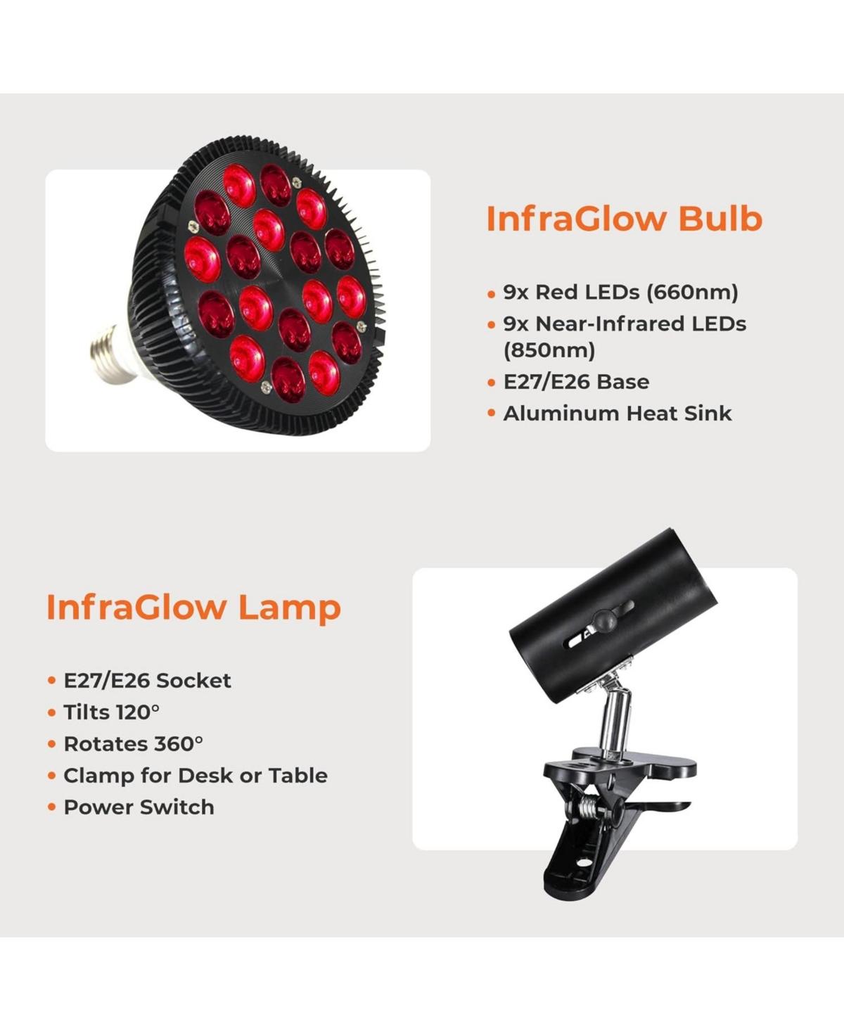 LifePro InfraGlow Red & Nir Therapy Lamp – 18 Led Clip-On for Pain Relief & Skin Wellness - Black
