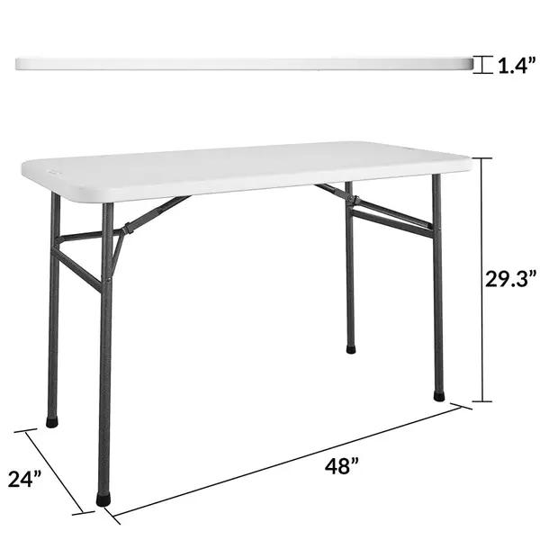 The COSCO 4ft. Straight Folding Utility table offers a versatile solution for everyday needs such as working from home, hosting parties or events, camping, tailgating, or crafting. This durable blow mold table is portable and user friendly. This table is designed for maximum compatibility and comfortably sits four people. Includes non-marring foot caps to protect any floor surface from scratches or damage. Our 4 ft. folding utility table folds flat and compact to easily store in the closet or garage when not in use. Manufactured with easy to clean resin paired with a durable steel frame, this table ensures long lasting use while featuring a 300 lb. weight capacity. Featuring a weather and shatter resistant tabletop, this table is great for both indoor and outdoor use. Whether creating a functional work from home space, hosting events, or tailgating at a football game, this table is the perfect addition to help make your life easier and more organized. Comes with a standard 1-year, limited warranty.