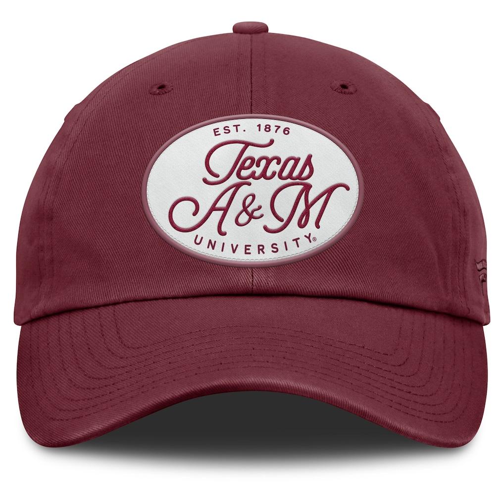 Stand up and tip your cap when the Texas A&M Aggies find the endzone with this Candid Adjustable Hat from Fanatics. Made for comfort and style, this hat features an unstructured, lightweight construction that gives it a broken-in fit and feel. The six-panel design includes breathable eyelets, while the woven clip tag on the rear adds a touch of authentic team flair. Embroidered with the team wordmark and logo patch on the front panels, this cap boldly displays your allegiance on campus, at the stadium, or around town.
