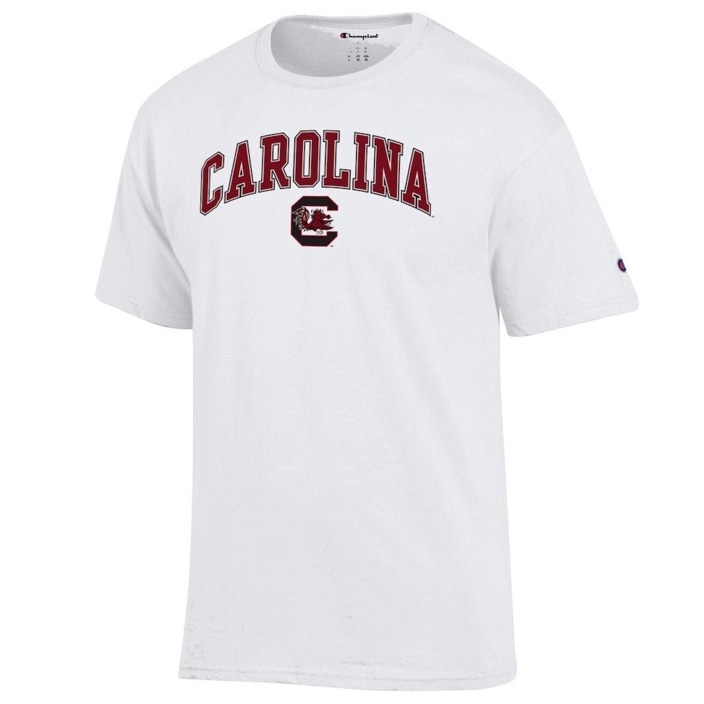 Boost your South Carolina Gamecocks spirit with this classic Champion Arch Over Logo T-Shirt. Made from breathable 100% cotton, this South Carolina Gamecocks tee provides lasting comfort for all-day wear. The classic crew neck design ensures a timeless look that pairs perfectly with any game day outfit.