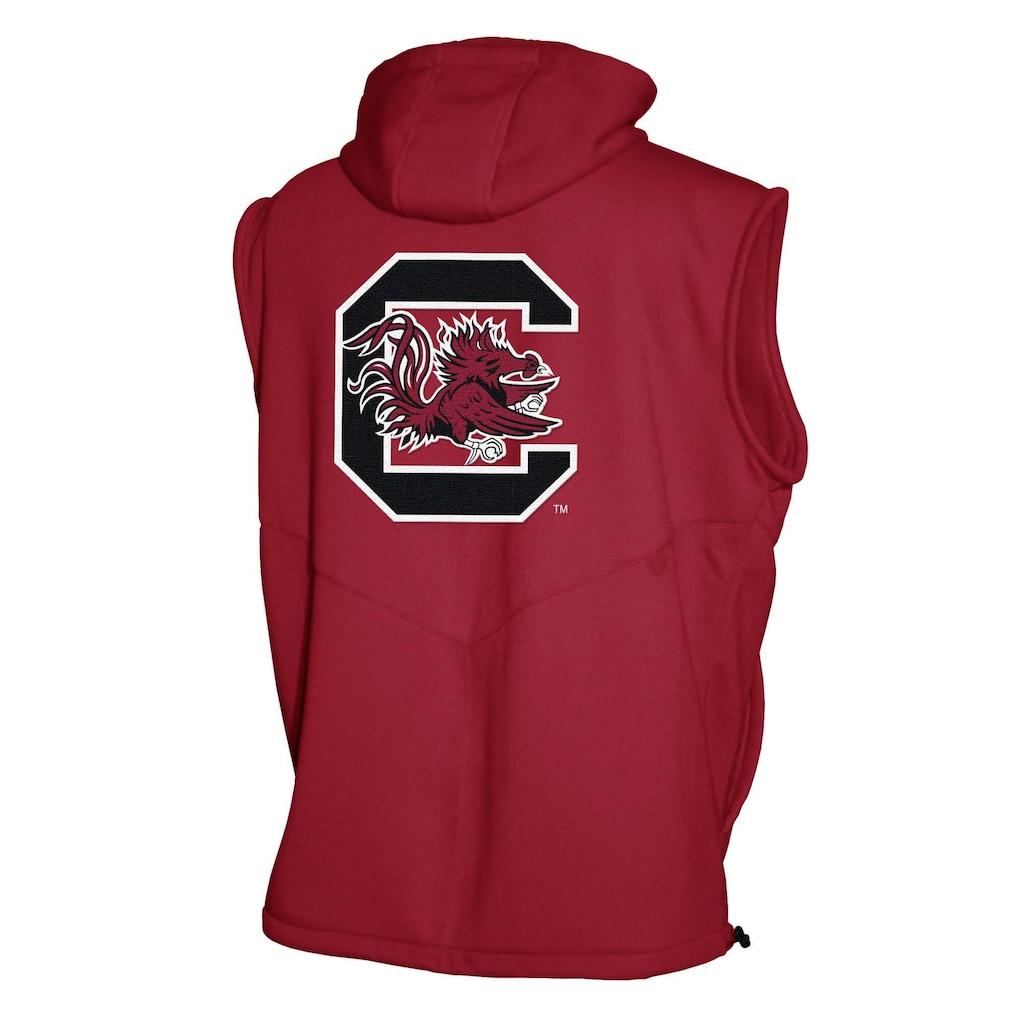 Add an extra cozy layer to your South Carolina Gamecocks gear with this Gym Fleece Full-Zip Hoodie Vest by Franchise Club. The soft fleece fabric and hood with adjustable drawstrings offer ultimate comfort on cooler days. Plus, the embroidered South Carolina Gamecocks applique displays your unwavering team spirit.