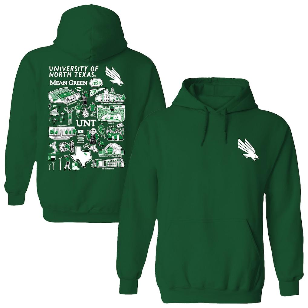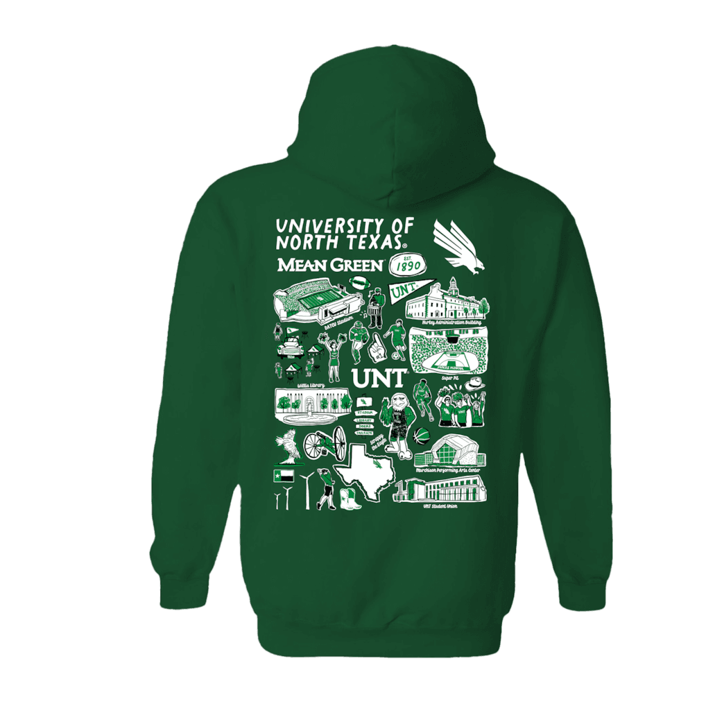 Showcase your North Texas Mean Green pride in style with the Vive La Fete Impressions Artwork Pullover Hoodie. This pullover hoodie features a screen-printed, hand-sketched artwork of iconic North Texas Mean Green imagery on the back, making it a unique and stylish way to show your school spirit. Breathable and comfortable, the fabric blend has a cozy fleece texture inside for added warmth.