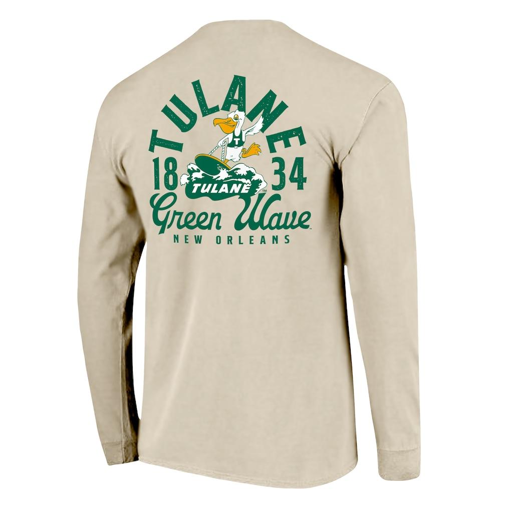 Tulane Green Wave Comfort Colors Mascot Overlay Long Sleeve T-Shirt