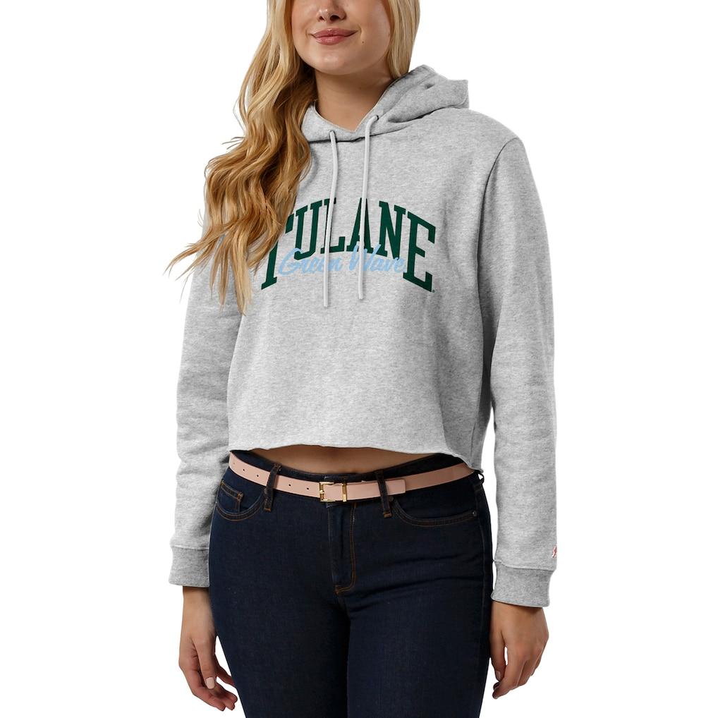 The Women's League Collegiate Wear Ash Tulane Green Wave Cropped Pullover Hoodie is the perfect way to show your support for the Tulane Green Wave. This lightweight hoodie is made from a soft cotton and polyester blend, making it comfortable to wear all day long. The cropped design and drawstrings give it a stylish look, while the screen print graphics proudly display your Tulane Green Wave pride. Whether you're cheering on the team at the game or just relaxing at home, this hoodie is sure to keep you comfortable and stylish.