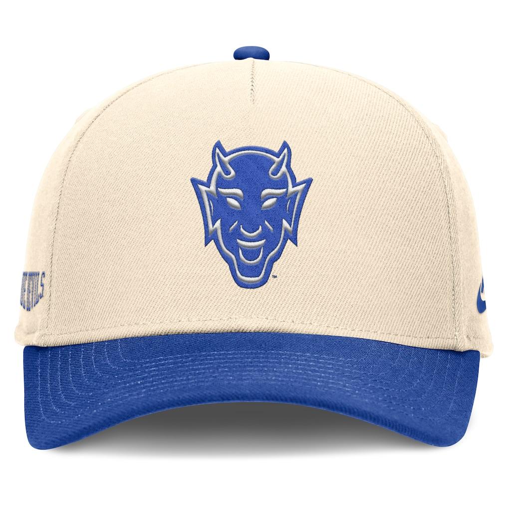Duke Blue Devils history and modern performance come together in this Academic Rise Dri-FIT Adjustable Hat by Nike. It features vintage team details embroidered on heavyweight fabric enhanced with sweat-wicking technology to keep you cool and dry. A snap closure lets you quickly and easily adjust the fit of this two-tone Duke Blue Devils hat for the most comfortable feel.