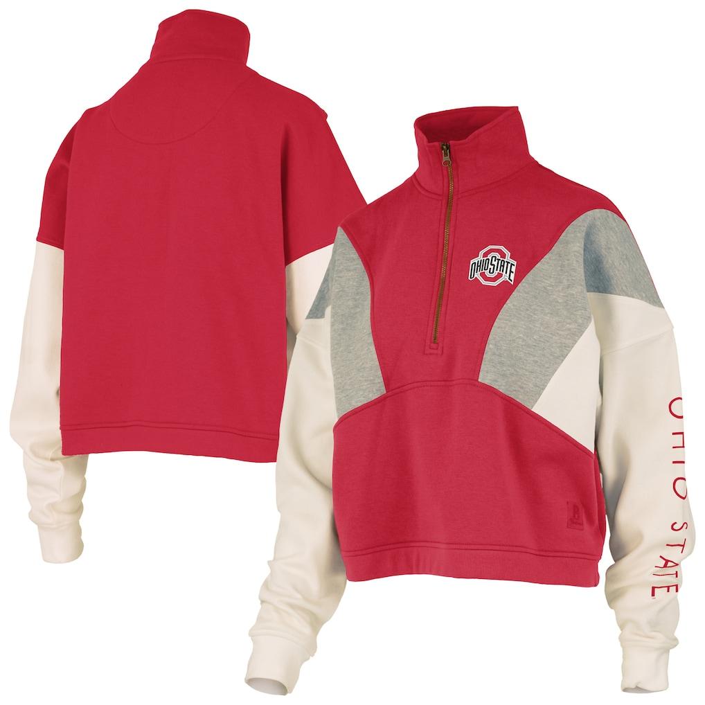 Ohio State Buckeyes Pressbox Women's Ferrara Color Block Quarter-Zip Sweatshirt