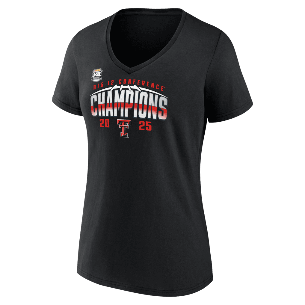 Relive the moment the Texas Tech Red Raiders became the 2025 Big 12 Football Champions every time you slip on this V-Neck T-Shirt. Featuring graphics that embody the team's grit and determination to make it to the top of the conference, you'll be able to immortalize this moment in Texas Tech Red Raiders history. With a lightweight and breathable cotton build, this tee will keep you comfortable as you root for your favorite team during the playoffs.