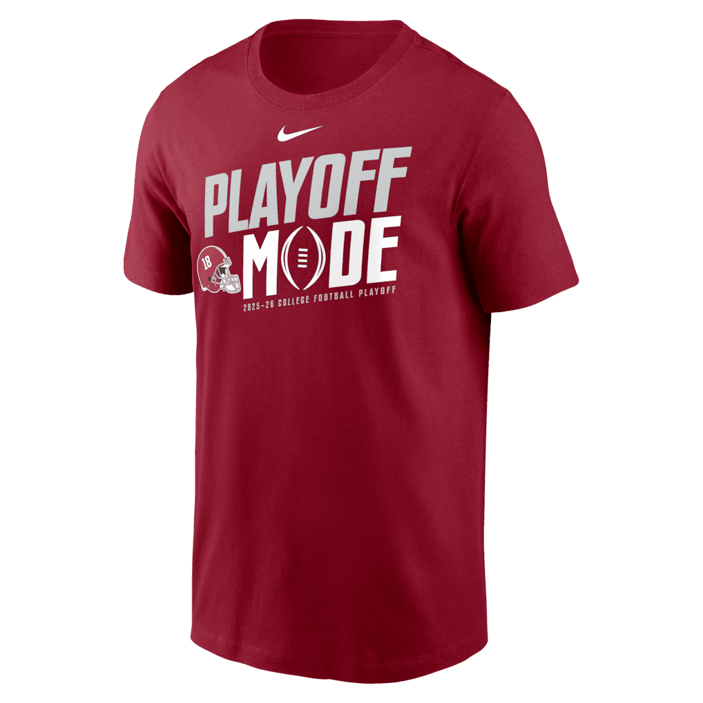 Gear up for the College Football Playoffs with this Alabama Crimson Tide Pass Protection T-Shirt from Nike. Featuring 2025-26 College Football Playoff graphics on the front, you'll be able to represent the Alabama Crimson Tide in style as they dominate the competition during the playoffs. With a lightweight and breathable cotton build, this tee will keep you comfortable as you enjoy all the action on the gridiron.