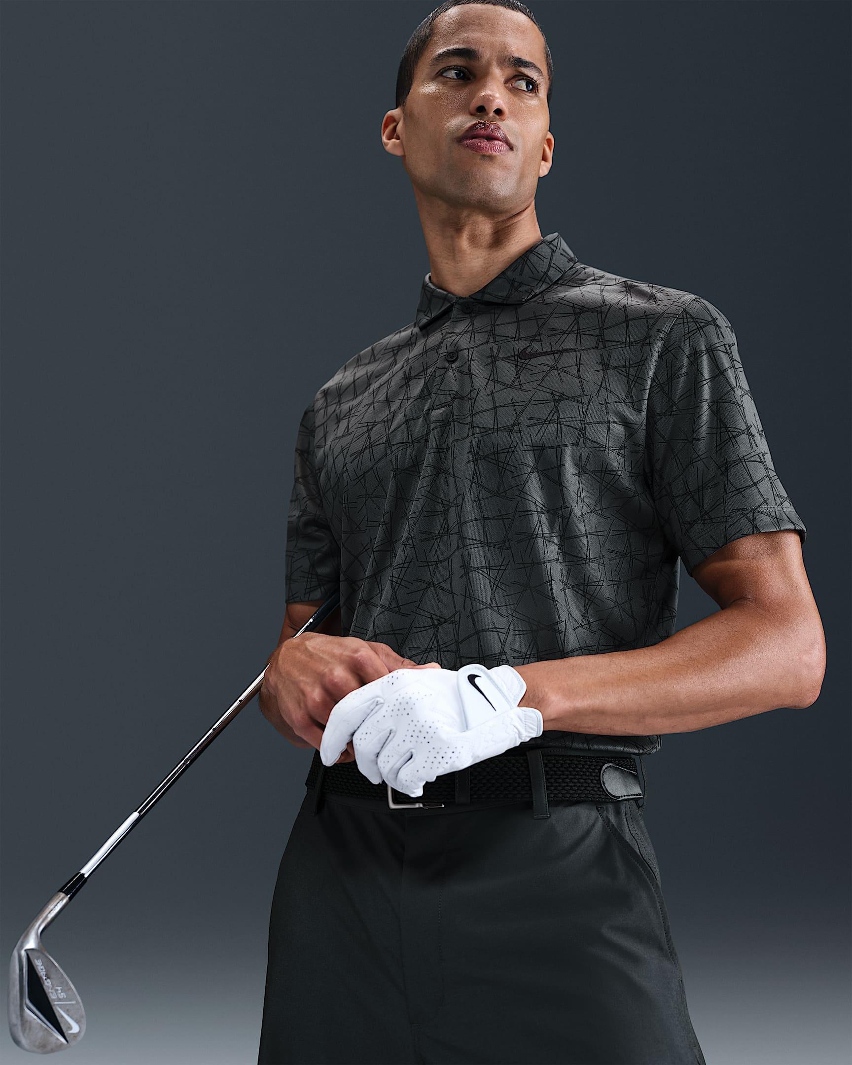 This Victory+ polo has a classic fit with smooth, sweat-wicking fabric to help you stay dry and focused on your game. Graphics are inspired by the wire grass, pine needles and pine cones lining the fairways.