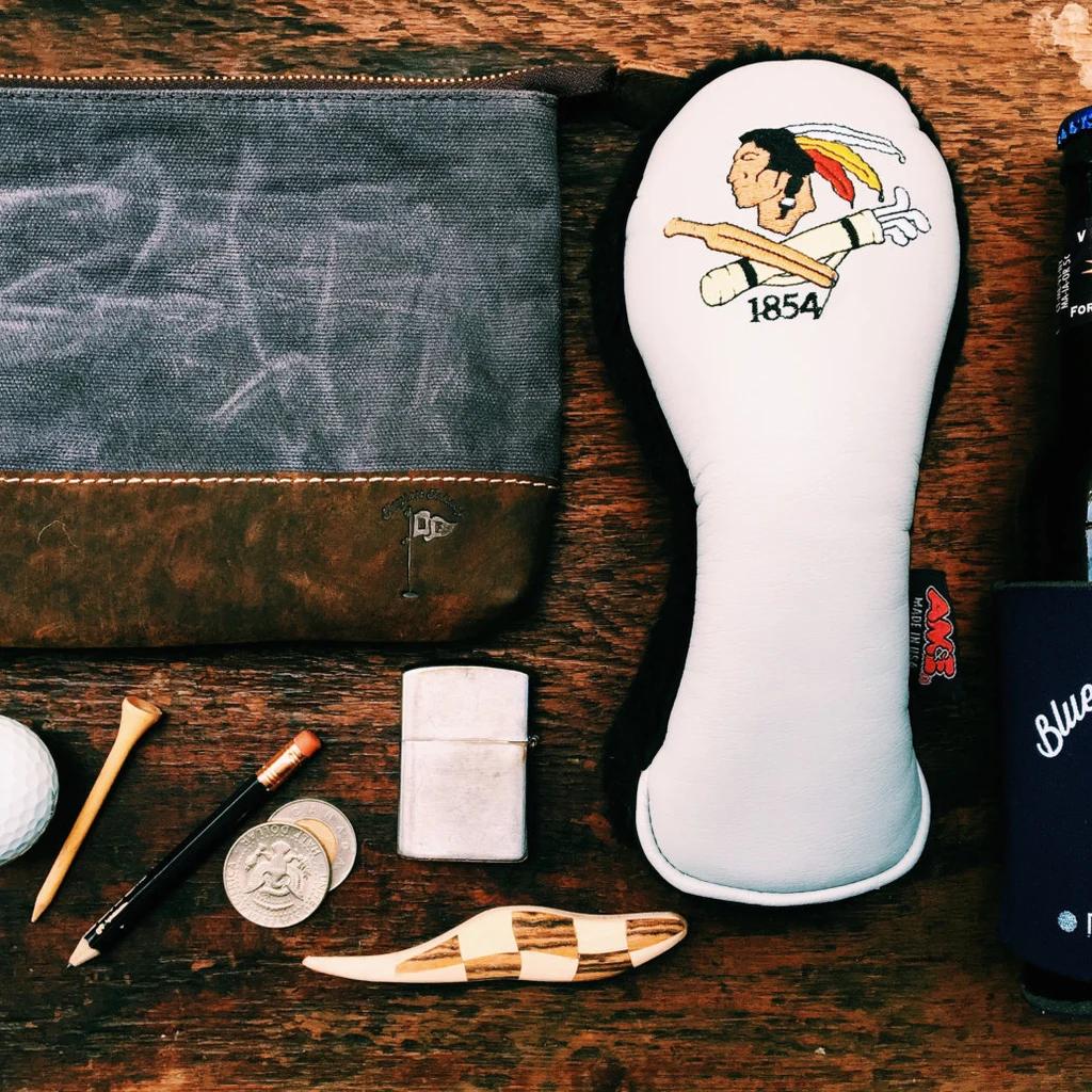 Our Golf Field Pouch in waxed canvas, is the last golf valuables you will ever need. Store your Wallet, Keys, Flask or any other items during your round. Tough, rugged, durable & built to last. The material we use to make this bag is an 10 oz American waxed canvas. Lined with a soft tartan interior. The bottom of the pouch is made with North American Bison leather. Vegetable tanned leather embossed logo on front. All our bags are handmade in the USA & designed with care & attention to detail. The pouch measures approximately 8" wide X 6" tall.