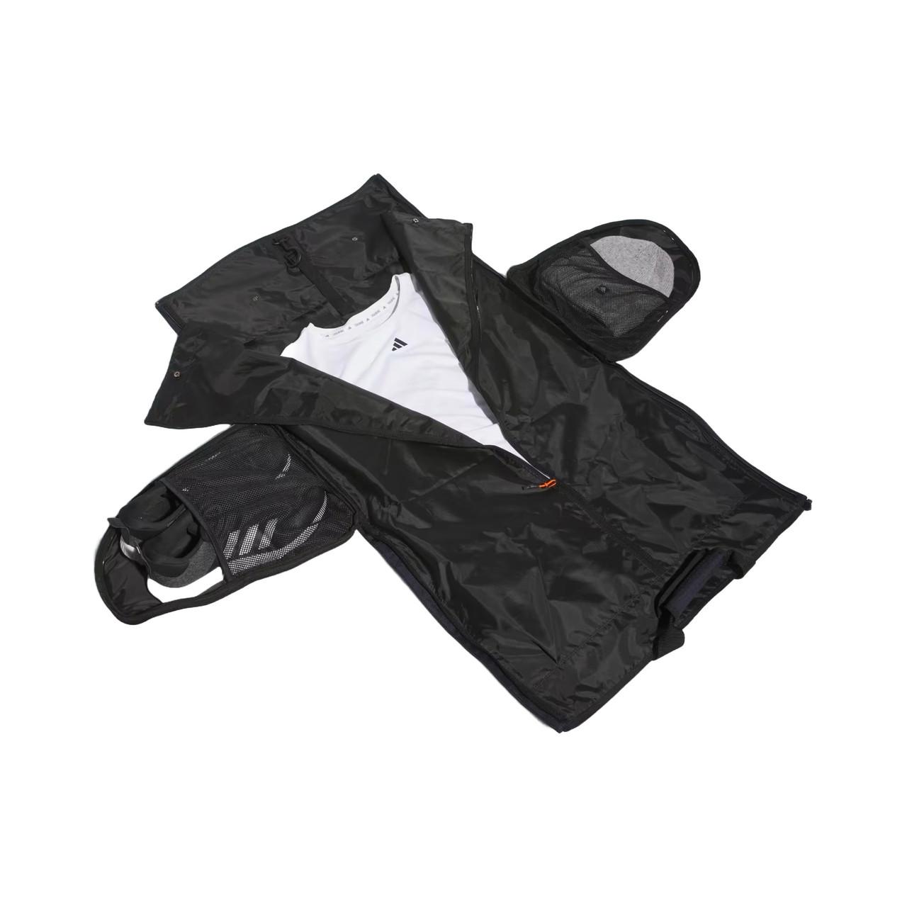 Garment Duffle Bag A golf travel bag made in part with recycled materials. Wherever your game takes you, this Adidas golf duffel bag keeps your golf uniform ready for action. It converts to a garment bag for suits, shirts and pants. Dual handles and an adjustable shoulder strap provide carrying options, and a front zip pocket gives you a place to stash your keys and phone. This product is made with 50% recycled materials. By reusing materials that have already been created, we help to reduce waste and our reliance on finite resources and reduce the footprint of the products we make. Features Dimensions: 29.25 cm x 57.25 cm x 36.5 cm Volume: 59 L Outer:100% polyester (recycled); Inner:100% thermoplastic elastomer Front zip pocket Folds out to garment bag Dual carry handles.