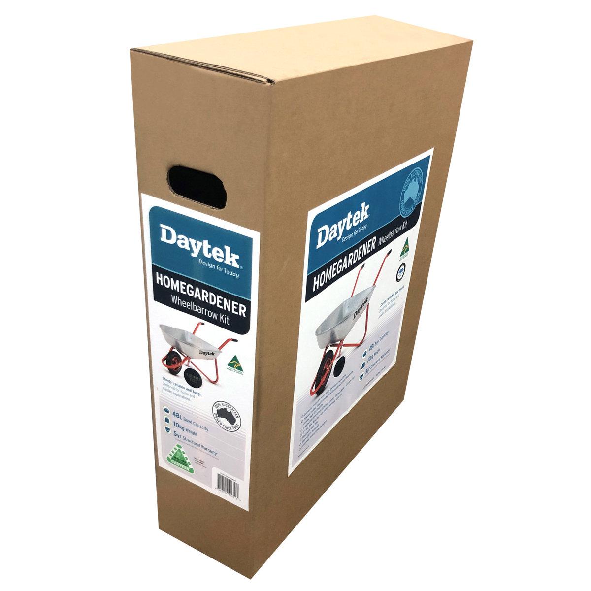 The HomeGardener is the perfect wheelbarrow for carrying your gardening material. The durable galvanized steel bed is rust-resistant and sturdy enough to haul stones, tree branches, soil, and other heavy materials. Galvanized steel wheelbarrows will usually outlast similar-sized ones composed of plastic or painted steel. Let Daytek's HomeGardener add efficiency and enjoyment to your outdoor chores!
