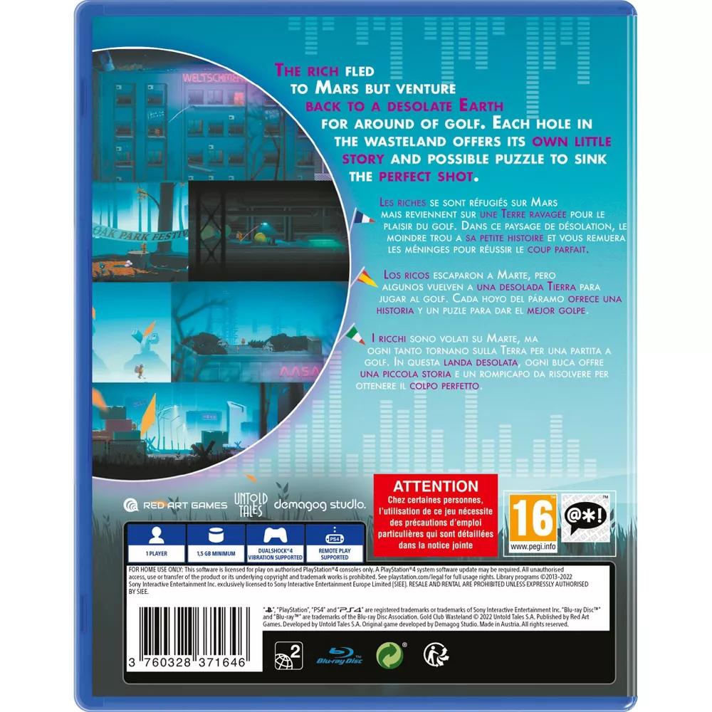 Human life is wiped out. Earth is now a golf course for the ultra-rich in Golf Club: Wasteland from Red Art Games for the Sony PS4. Physical PS4 edition will come with a golf scorecard and a double-sided poster!Urban Wasteland Adventure GolfThe rich fled to Mars but venture back to a desolate Earth for a round of golf. Each hole in the wasteland offers its own little story and possible puzzle to sink the perfect shot. Play through destroyed brutalist monuments, crumbling shopping malls, and abandoned museums as neon signs and poignant graffiti take swings at current events, Silicon Valley culture and humanity.Three Stories Make a (W)holePiece together the full story of how humanity fell through three distinct sources - Details from the lone golfer’s story, who's come back to Earth for one last game. The Radio Nostalgia from Mars broadcast gives a glimpse into the lives of those who escaped, and the narration of a “secret spectator” watching from a distance.In this dystopian sports puzzler, play through destroyed brutalist monuments, crumbling shopping malls, and abandoned museums as you piece together the full story of how humanity fell...Features:That's a Keeper - Included with every copy of the game is the digital Golf Club Wasteland Official Soundtrack plus a Graphic Novel Art Book that further expands the back story of the lone golfer Charley in stunning visual format.The 1% Killed the Radio Star - Be accompanied by a purposefully composed soundtrack as well as personal stories broadcasted on Radio Nostalgia From Mars. The station caters to citizens of Mars, nostalgic for Earth as they listen to music from the 2020s, and dial in to share their memories of the planet. A smooth voiced radio DJ keeps the show flowing with updates and announcements hinting to a not so glamorous life on Mars.Fits Like a Glove - Three distinct modes mean every golfer can find something for their tastes. Casual players can focus just on the story and a relaxing scenic round of golf in Story Mode. Those looking for an extra challenge can beat each hole under par using skill and puzzle solving through Challenge Mode. While the total pros can try Iron Mode, where there’s almost zero room for error. Easy to grasp controls and a minimalist UI underpin the whole game so anyone can easily pick up and play at their own pace.