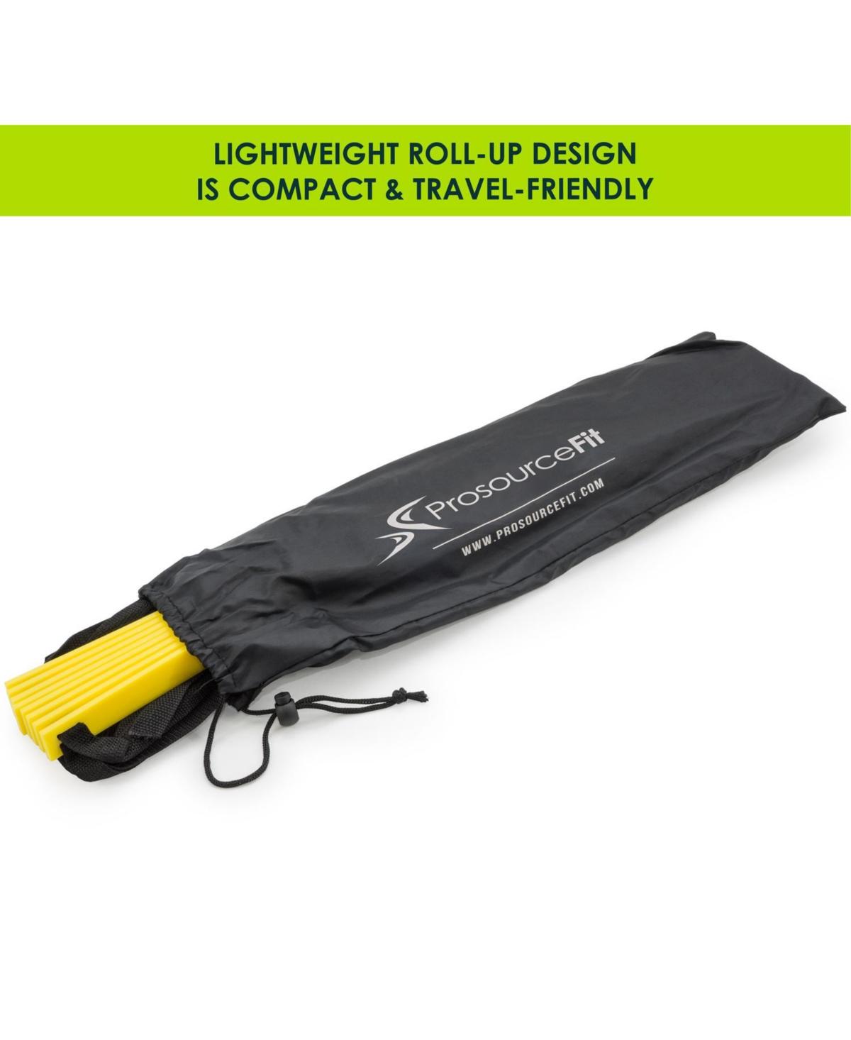 If you want to improve your speed, agility and cardio capacity, The ProsourceFit Speed Agility Ladder is the perfect fitness accessory. Speed ladders have been popular with coaches, athletes and gyms for years due to their ability to make athletes better at footwork, quick directional changes and intense workouts. The simple yet effective design strings together adjustable rungs that can be easily rolled out onto any flat surface for training. A variety of drills like high knees, lateral hops, cariocas, squat hops, shuffle steps and more. These drills are ideal for a variety of sports such as football, soccer and boxing, but can also be great for general cardio workouts. The multi-directional movement helps with overall mobility, balance and injury prevention. The high-intensity also helps to boost aerobic capacity and burn calories quickly, which is helpful for weight loss. The easy roll-up design is compact and comes in a convenient carrying bag for easy transport anywhere.