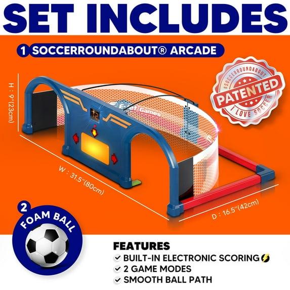 Calling all soccer enthusiasts! Take your game to the next level with Soccer RoundAbout the innovative interactive trainer that lets you hone your skills indoors rain or shine. This engaging product caters to players of all ages and abilities offering a fun way to improve your first touch ball control Soccer Arcade and reflexes. This Soccer RoundAbout features flashing lights and challenging drills that push you to react instinctively sharpening your reflexes and making you a more confident player. Whether you re training solo or having a friendly competition with friends and family this SoccerRoundAbout provides a fun and engaging environment to practice your skills anytime anywhere. The SOCCERROUNDABOUT® ARCADE (patented) elevates the experience with its high-tech features. This complete set includes a durable foam soccer ball and a trainer equipped with built-in electronic scoring for effortless tracking a smooth ball path for optimal control and two exciting game modes – random and sequence – to keep you challenged. But this Soccer-Round-About isn t just about practice; it s about bringing the joy of soccer to any gathering! Liven up birthday parties World Cup watch parties or any get-together with this interactive trainer that sparks friendly competition and keeps everyone entertained for hours. Looking for the perfect gift for the aspiring soccer star in your life (ages 6+)? Look no further than this Soccer RoundAbout! This engaging trainer helps them develop their skills while having a blast. It s the gift that fosters a love for the beautiful game and provides endless hours of active fun. Don t wait – order your Soccer Roundabout today and get ready to experience the beautiful game in a whole new way!