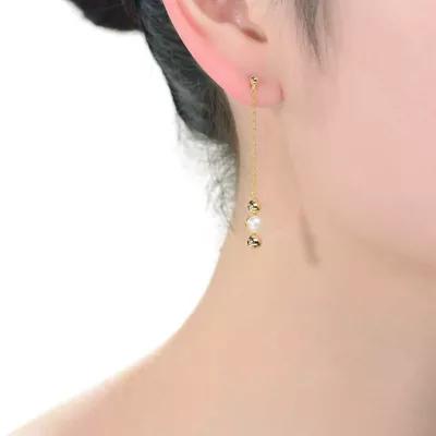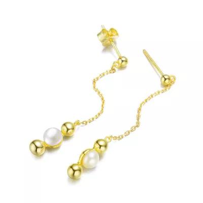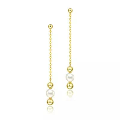 Elevate elegance with Sterling Silver 14K Gold Plated Dangling Earrings, featuring 5.5mm Freshwater Pearls. Perfect for any occasion, these earrings exude sophistication and timeless beauty. Measurement 50mm.