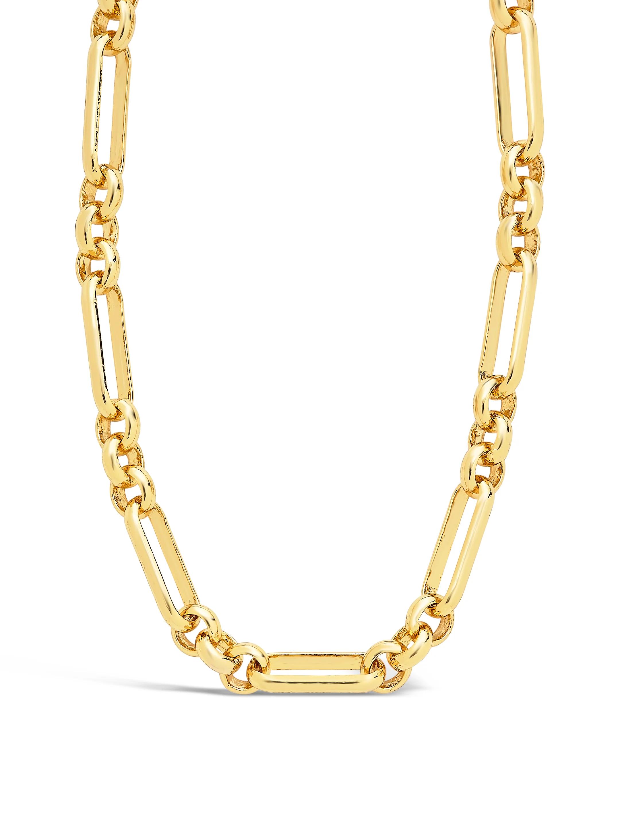 Introducing the Sterling Forever Large Oval Link Necklace - a stunning piece that exudes modern elegance while capturing the essence of timeless fashion. Crafted with the utmost precision, this necklace is designed to make a bold statement and become the focal point of your chic and confident style.Featuring oversized oval links, this necklace effortlessly combines contemporary flair with classic charm. The dynamic and eye-catching design showcases the artistry and finesse involved in its creation, adding a touch of sophistication to any outfit.Made from 14k Gold or Rhodium plated brass, this necklace promises durability and a lustrous shine that will last for years to come. Choose from the timeless allure of gold or the sleek allure of silver, ensuring a perfect match for your personal style.Measuring 18 inches in length, this necklace hangs gracefully on your neckline, adding a touch of elegance to any ensemble. The lobster clasp ensures a secure and comfortable fit, allowing you to wear it with confidence.Whether you're attending a formal event or adding a touch of glamour to your everyday look, the Sterling Forever Large Oval Link Necklace will become your go-to accessory. Make a bold statement and let your style shine with this exquisite piece from Sterling Forever.