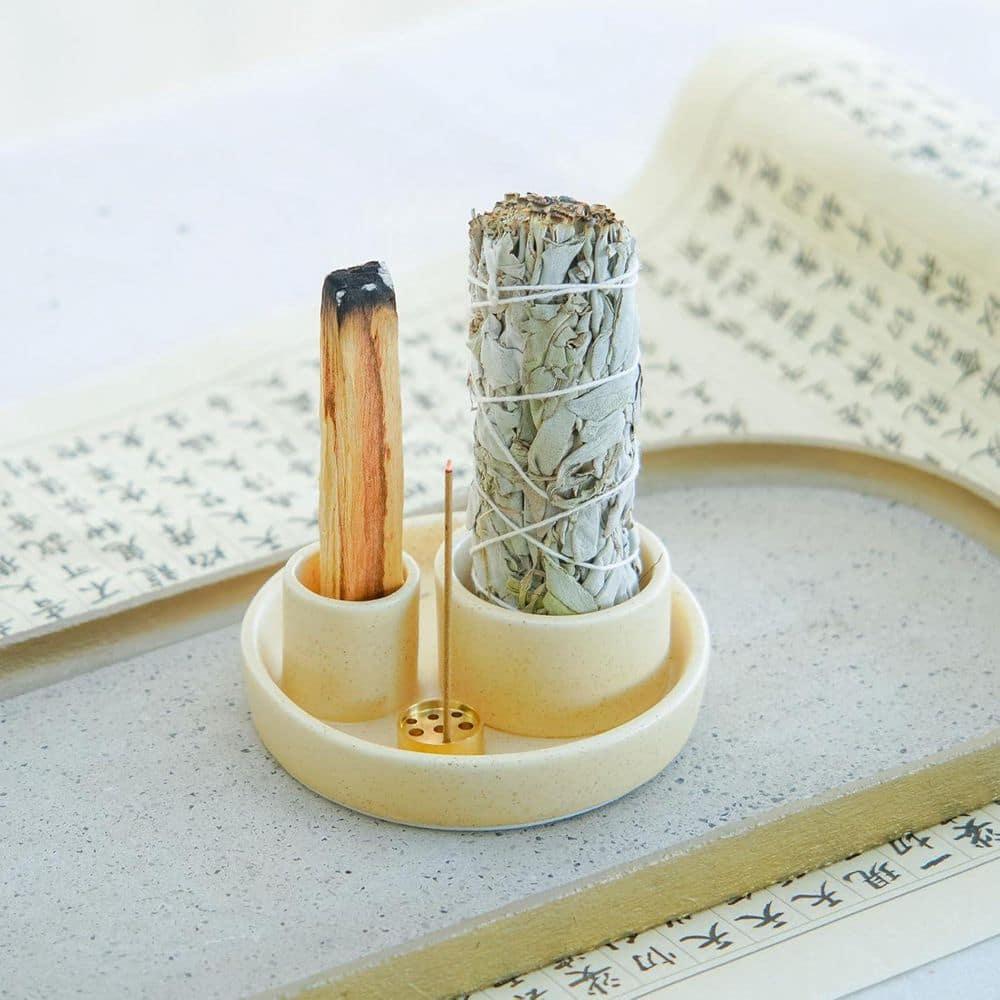 Sand Ceramic 4-in-1 Incense Holder with Ash Catcher Tray for Meditation and Yoga