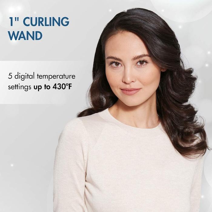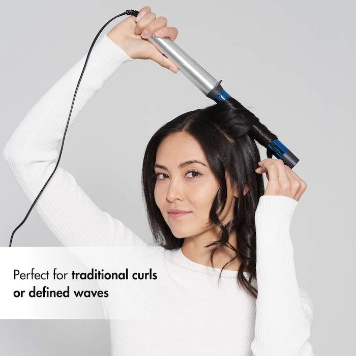 A one-inch curling wand that heats up to 430°F to create long-lasting traditional curls or defined waves.Hair Type: Straight, Wavy, Curly, and CoilyHair Texture: Fine, Medium, and ThickHair Concerns:- Curl-Enhancing- Shine- VolumizingKey Benefits: - Increases shine- Reduces frizz- Creates defined curlsWhat Else You Need to Know: This one-inch ultra-lightweight curling wand evenly distributes heat for gentler styling on all hair types. It has five easy to read digital temperature settings up to 430°F.