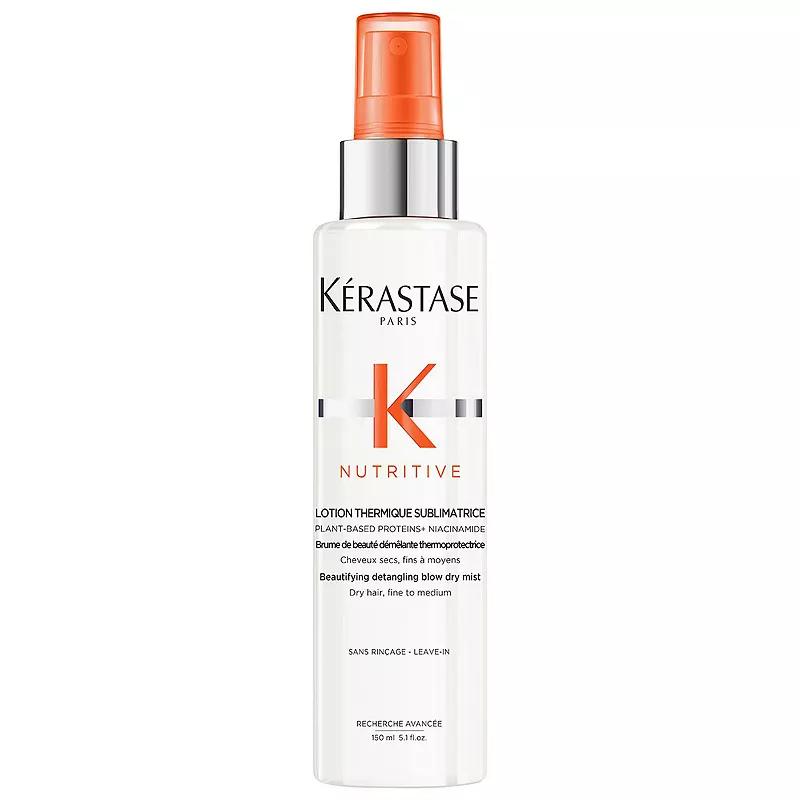 This nourishing leave-in spray protects against heat up to 450F, adds deep nutrition, and prevents breakage from styling tools for fine to medium hair dry hair. It is formulated with plant-based proteins and niacinamide, which helps to deeply condition hair making hair easy to comb and detangle and reducing breakage. This spray is also loved by pro stylists and reduces frizz and flyaways while giving hair instant suppleness, radiant shine, and a satin touch.