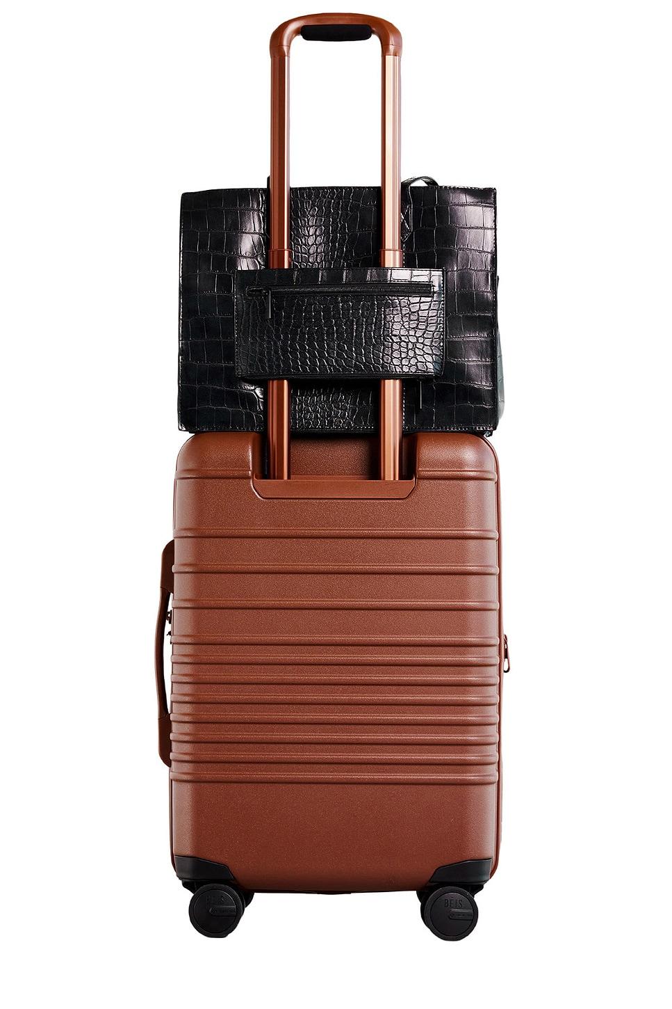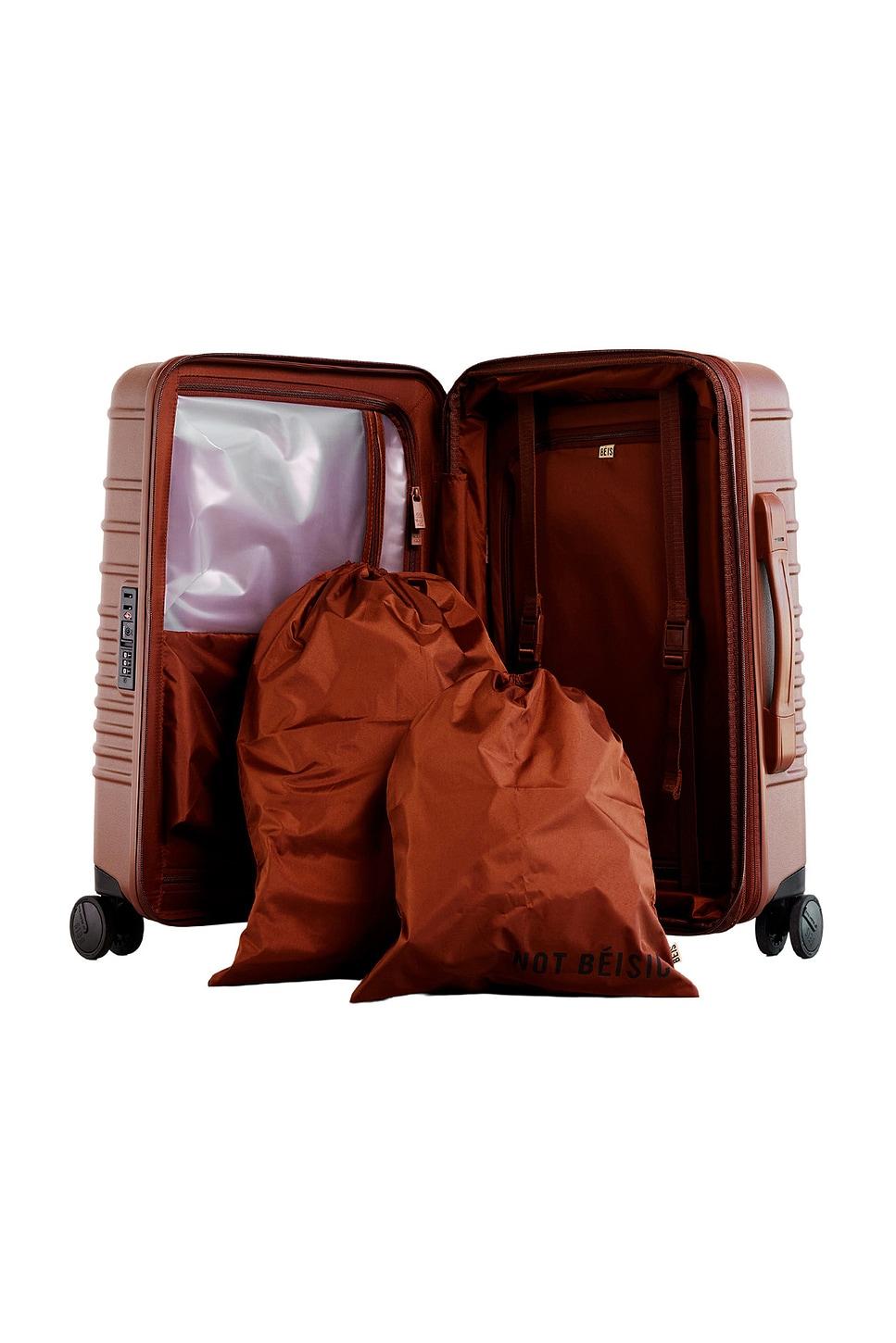 Durable hardsided 100% virgin PolyCarbonate (virgin materials guarantee a higher durability). Made in China. TSA approved zipper locks. Extendable BEIS logo-ed trolley handle with soft hand cushion for comfort. BEIS logo retractable bag attach strap - hold up to 15lbs. Hinomoto 360 degree wheels. Interior: Butterfly opening. U-zip flap, with contrast faux leather trim, includes one zip pocket & one frosted PVC zip pocket. Detachable, compression flap with U-zip pocket and mesh packet. Four point compression straps. Separate pouch set for dirty clothes, shoes, under garments, damp clothing. Exterior (including wheel & handle) measures approx 15.7"W x 22.8"H x 9.8"D. Interior measures approx 14.5"W x 13.9"H x 9.8"D. This item is not available for international export.