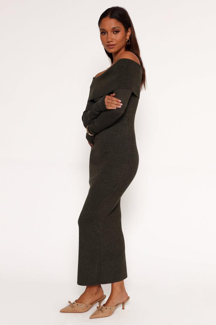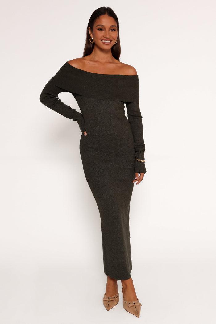 Step into the spotlight with the Archie Off The Shoulder Midi Dress, where timeless elegance meets modern chic. Imagine the gentle caress of a midi-length ribbed knit as it hugs your curves in all the right places, a bodycon fit designed to make a statement without saying a word.