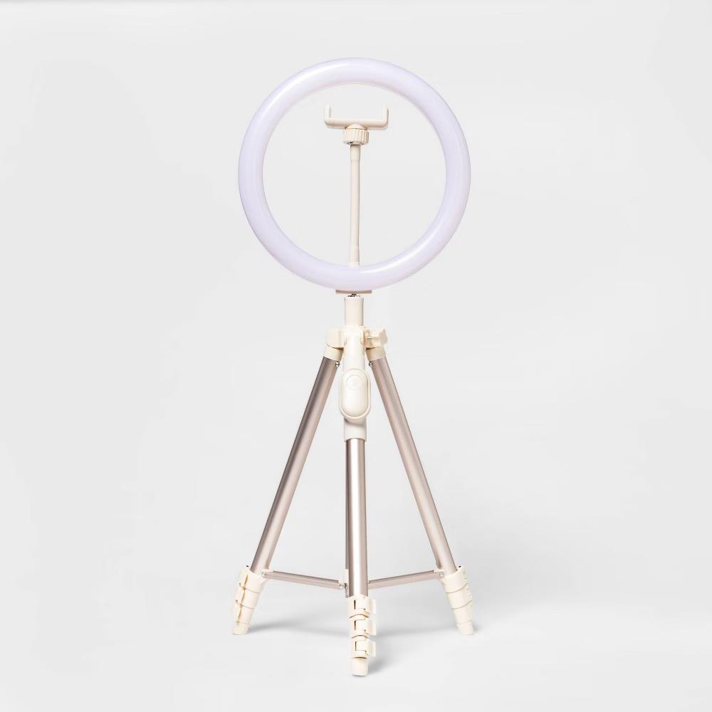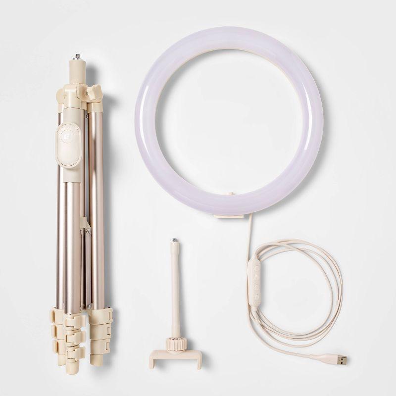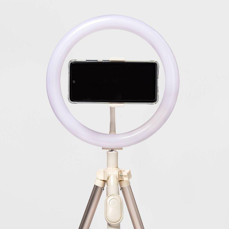 Whether you're shooting from your cell phone or a pro DSLR camera, say goodbye to blurry silhouettes and hello to well-lit views with the Ring Light with Tripod from heyday™. This multifunctional tripod makes it easy to take selfies, record videos, participate in Zoom meetings and more while taking care of pesky unwanted shadows to make your features pop to glowing perfection. The 10-inch diameter ring light features an adjustable color temperature and LED brightness setting to suit your space and preferred lighting, with a holder at the center that's compatible with most cameras and phones. The holder rotates and can be used vertically or horizontally. An extendable tripod lets you fixate the view to show just your face or more of your surroundings, and a remote allows for hands-free shooting alongside a 33-foot Bluetooth range. hey, you. It’s time to make your day. So take a minute to live out loud, to power your look, and let your style speak volumes.