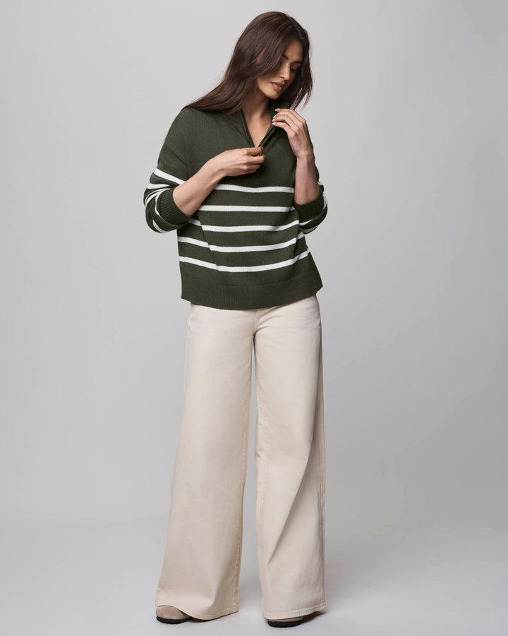 Georgie Stripe Quarter Zip Sweater