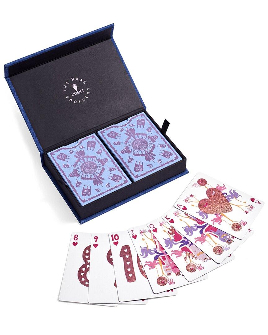 Introducing the exquisite L'Objet Haas Playing Card Set of 2 Decks, a stunning addition to your home decor collection. This elegant set is part of the vases-bowls-trays category and guaranteed to make the perfect gift for Mother's Day. The luxurious blue color/finish adds a touch of sophistication to any room.Crafted with the finest materials, this playing card set is designed to last for generations with proper care. Each deck measures 5.25 inches by 4 inches by 1.25 inches and arrives ready to use. Made in Portugal, this set is a true testament to L'Objet's commitment to quality and craftsmanship. Elevate your home decor with the L'Objet Haas Playing Card Set today.